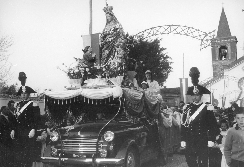 Basella Piazzale Santuario, aprile 1956, sesto Centenario Apparizione, partenza del corteo per Urgnano